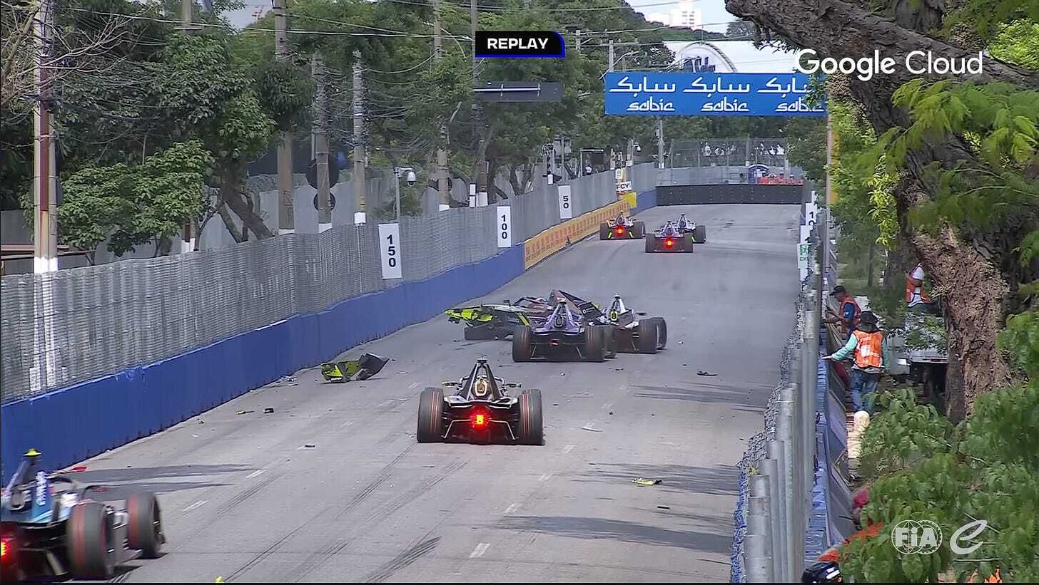 But of the 20 drivers on the grid, only 13 crossed the finish line. How come? The remaining seven DNFed from the madness that street circuits are made for. Many simply collided with the wall or each other, like Dan Ticktum taking damage from Nyck de Vries and Norman Nato crashing into a barrier.